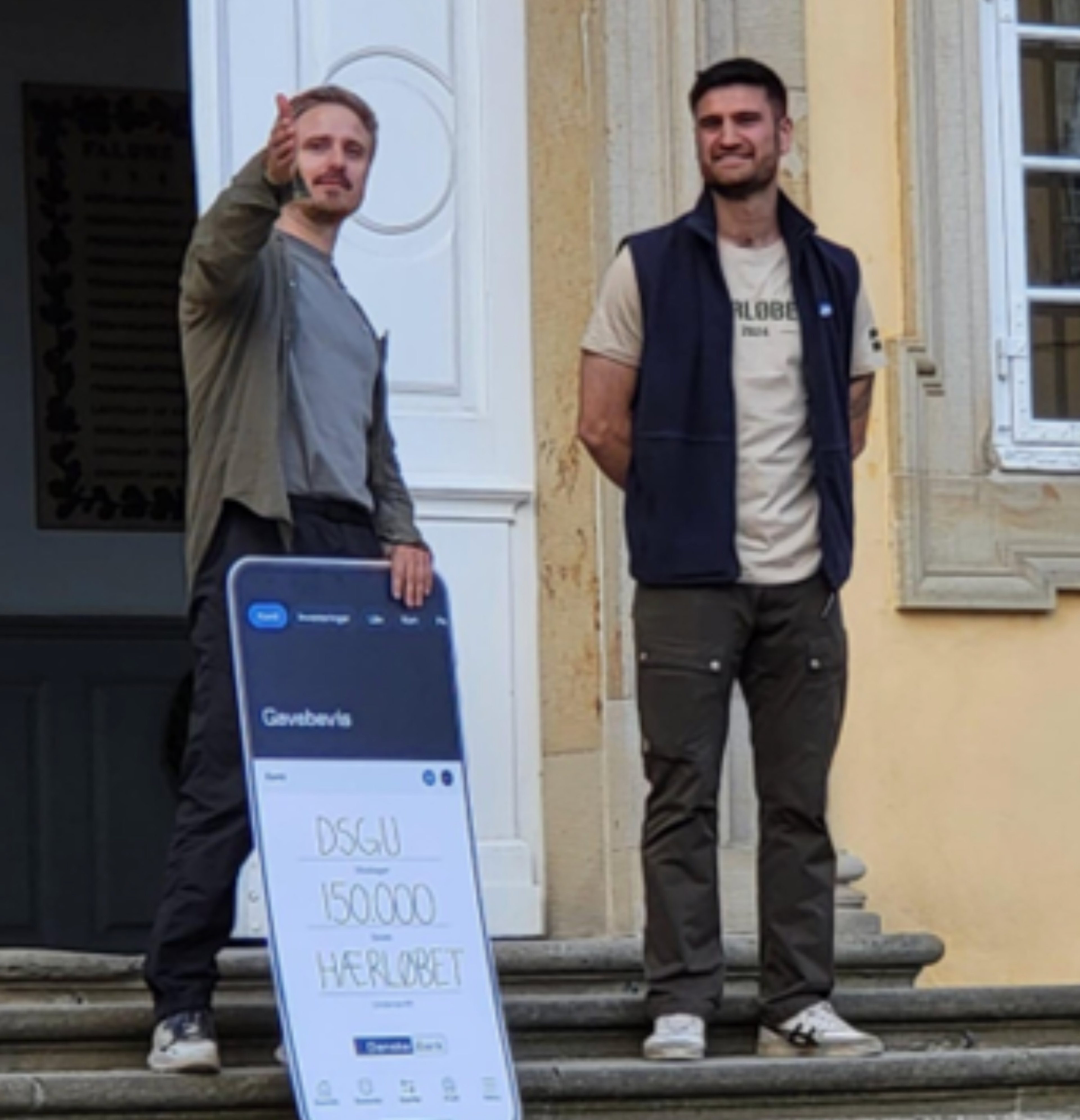 On behalf of DSGU, Thorbjørn was the happy recipient of the total proceeds of 150,000 DKK, presented by Nimer Ziadmanesh (Chairman of Hærløbet).